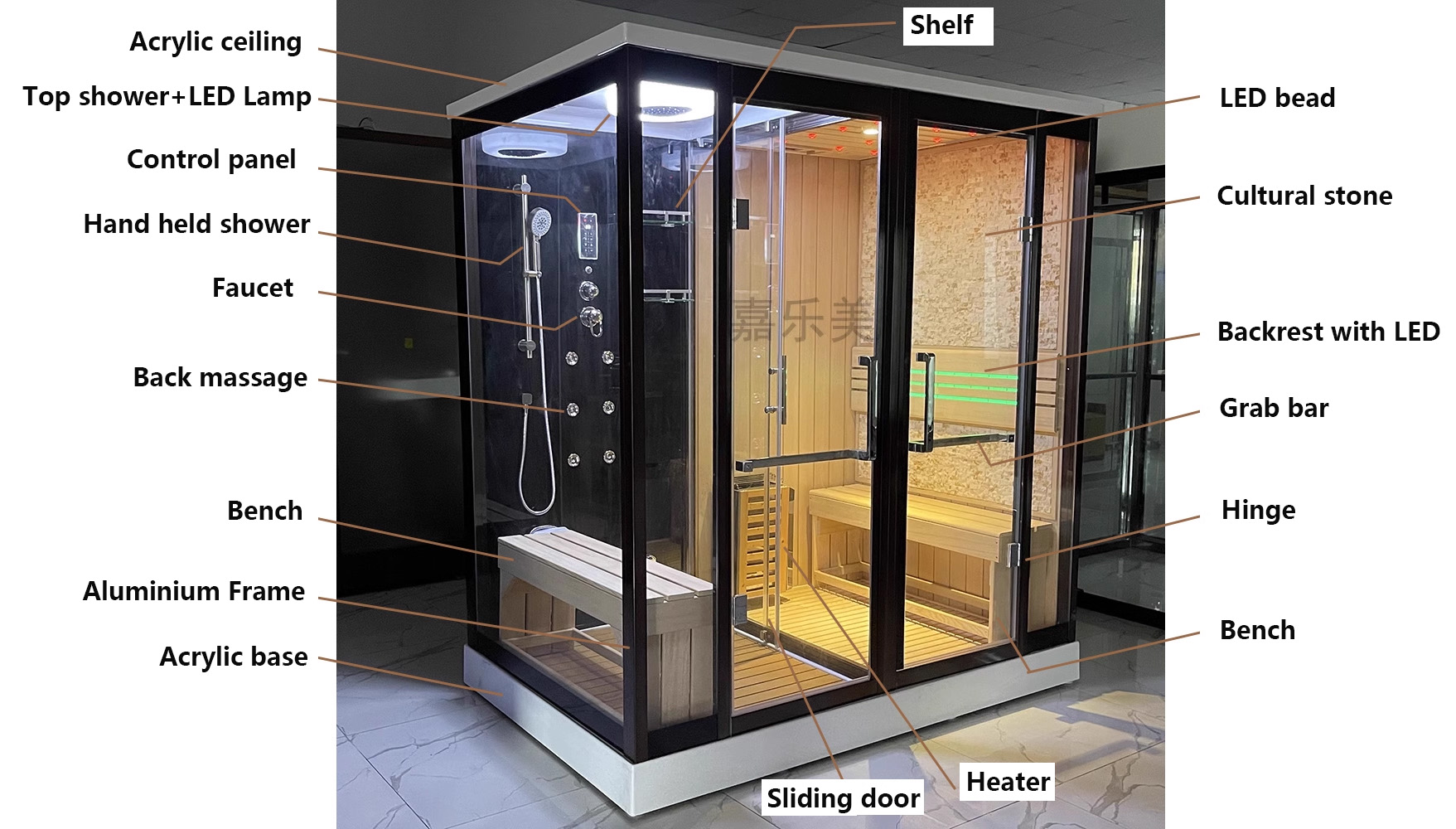 sauna room and steam shower room combination